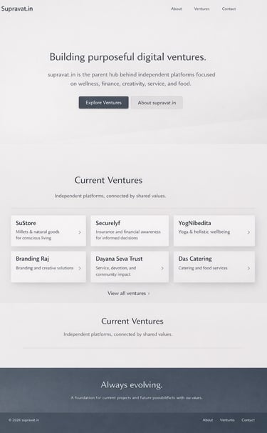 At supravat.in, we bring your ventures together under one digital roof, fueling growth and connection.